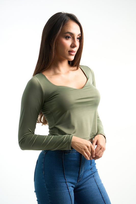 TOP ESCOTE CORAZON MANGA LARGA LEISA