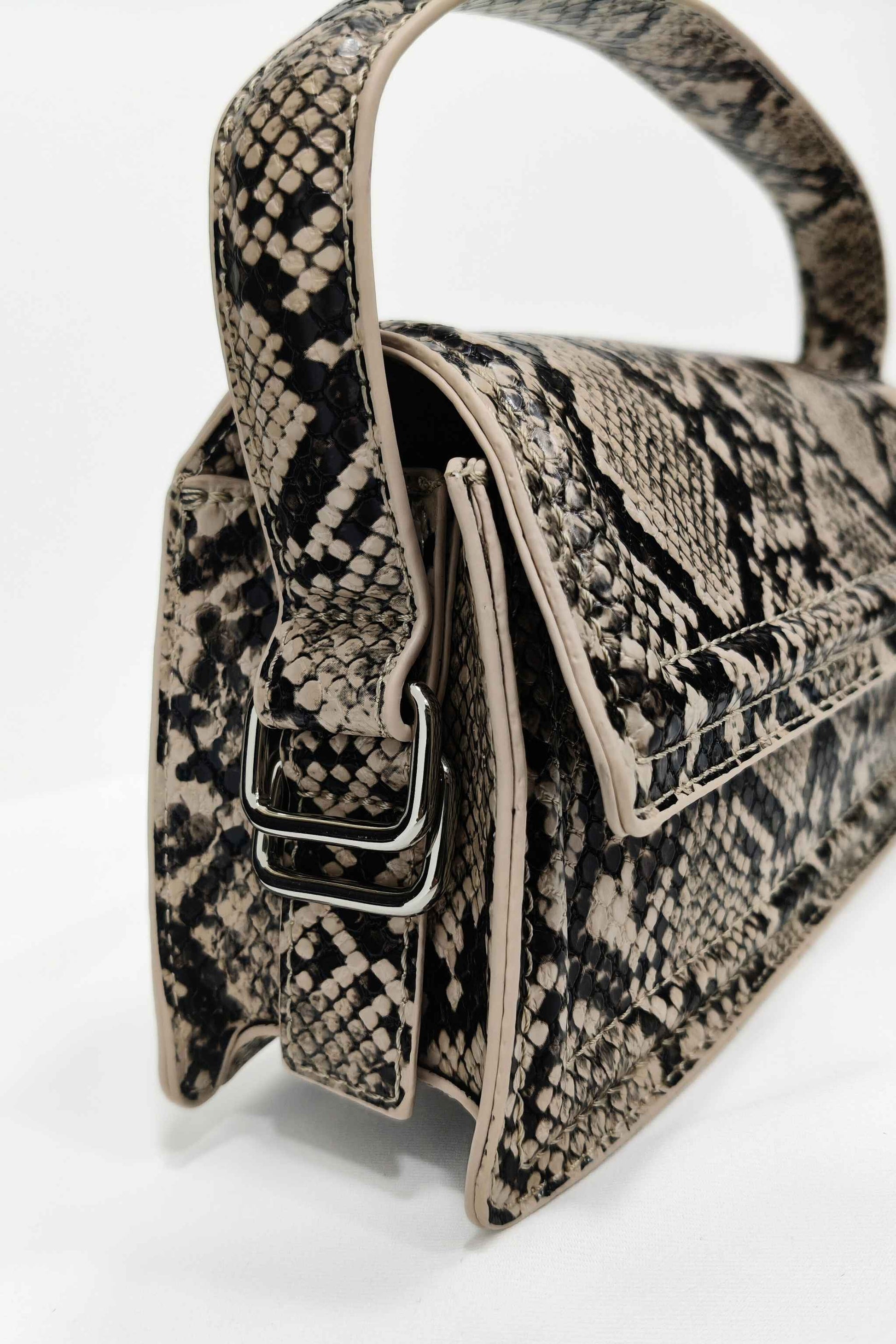 Bolso mini en acabado efecto piel de cocodrilo color burdeos, diseño estructurado y asa superior ,Interior con compartimentos y bolsillo con cremallera. Cierre mediante solapa y broche metálico .para un look elegante y moderno