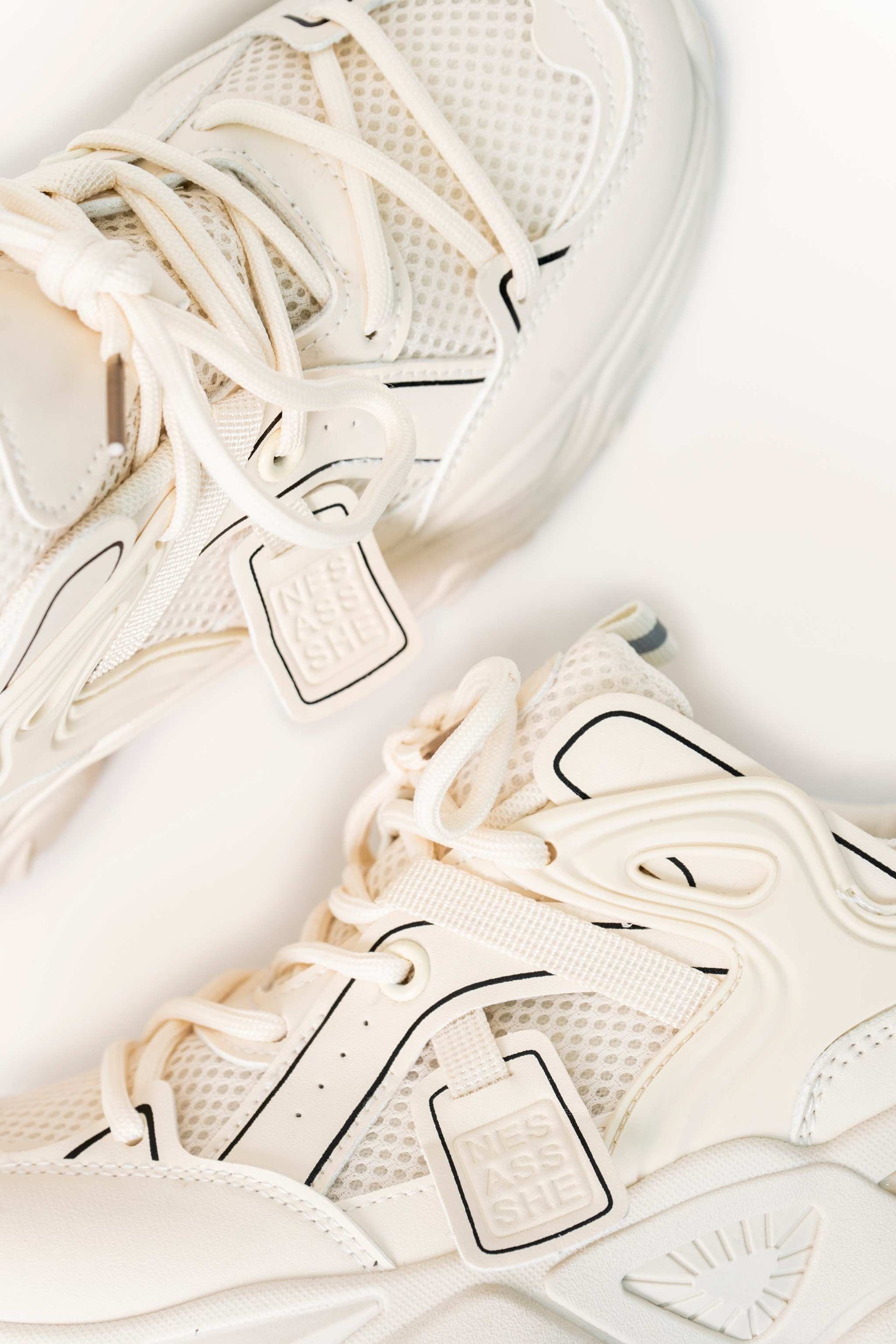 CALZADO tipo CHUNKY en combinación de materiales. Partes en tejido. Suela de plataforma irregular. Cierre mediante cordones