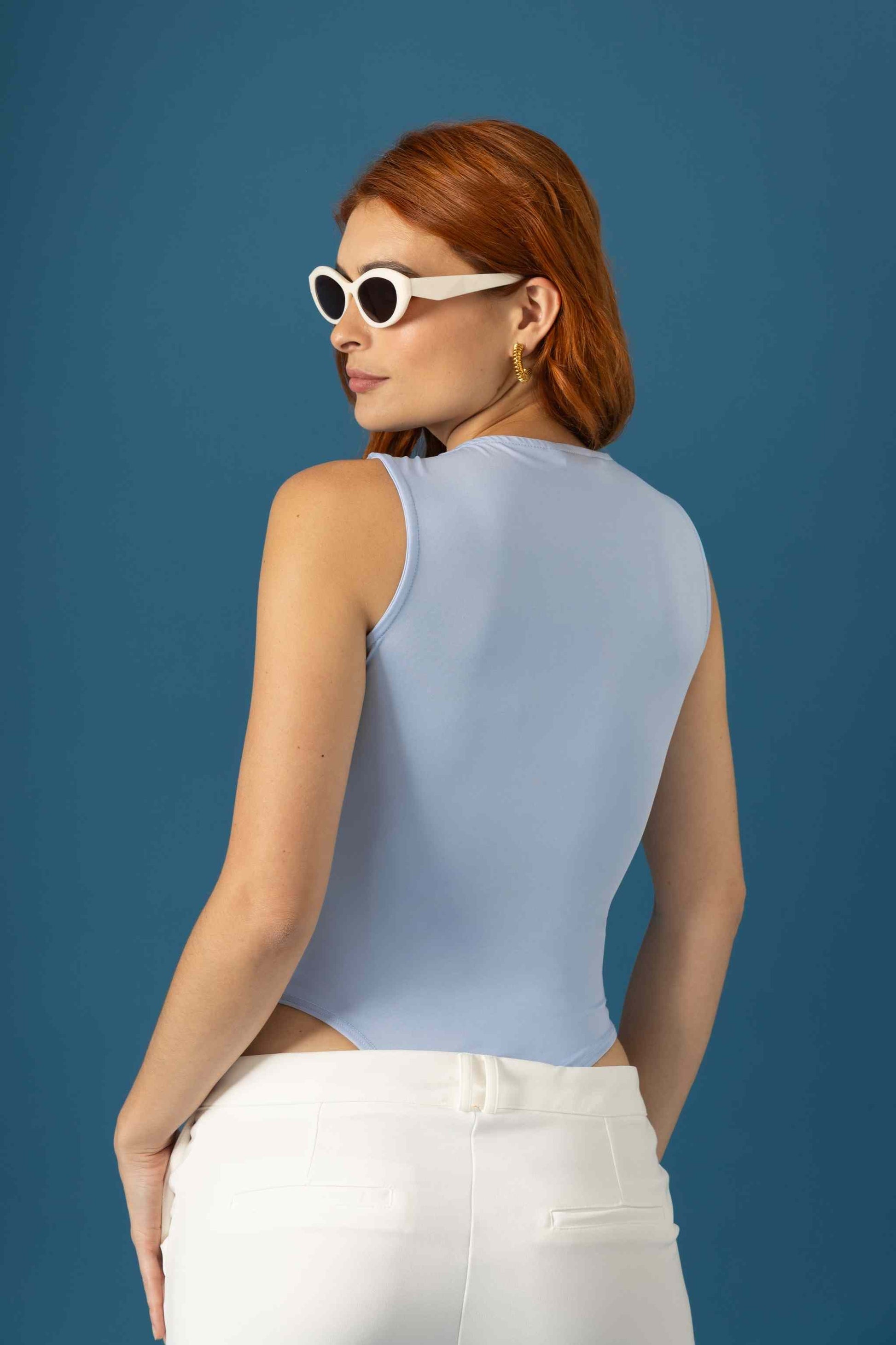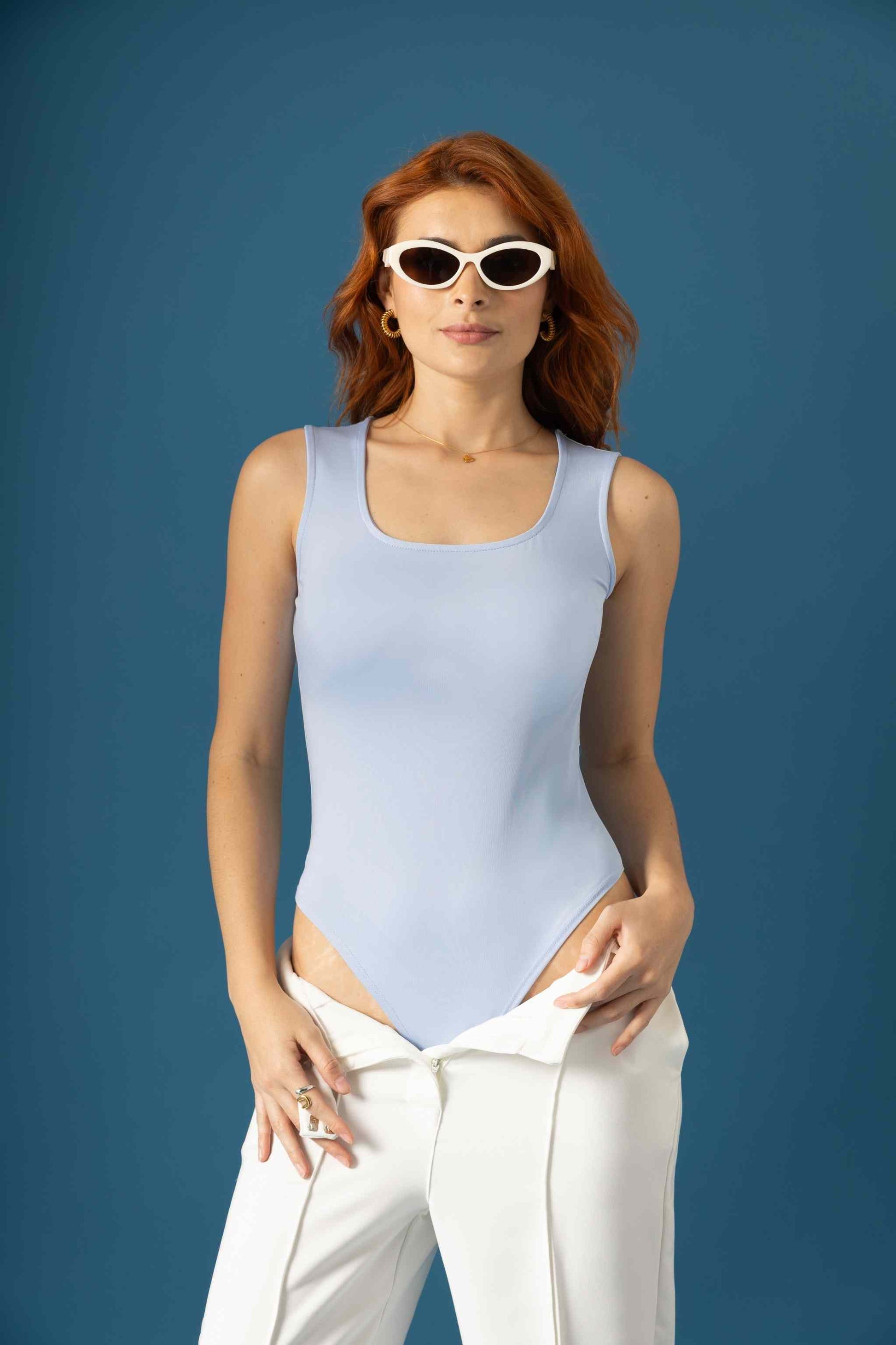 Body manga sisa, escote cuadrado, sistema de cierre broche en entrepierna.