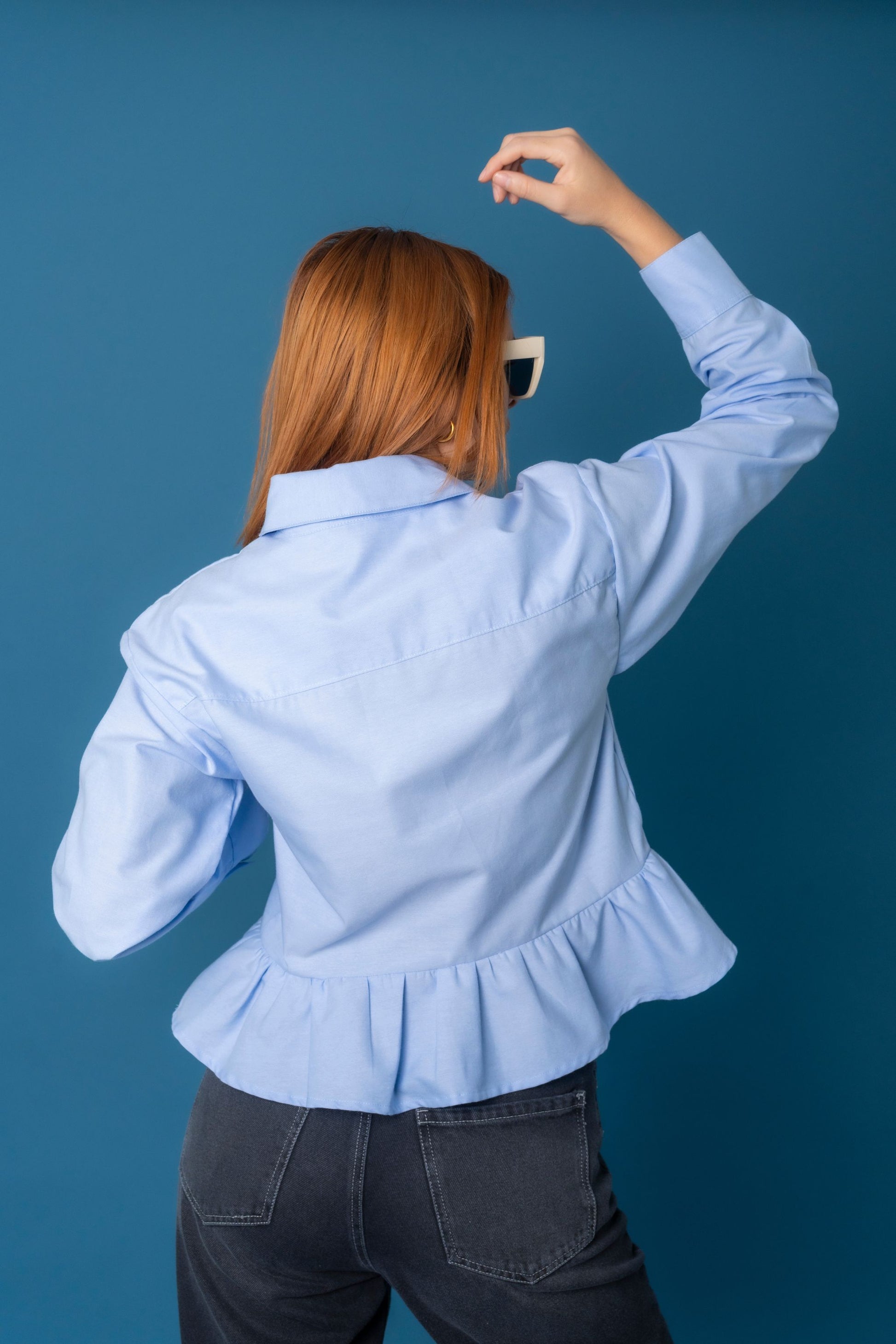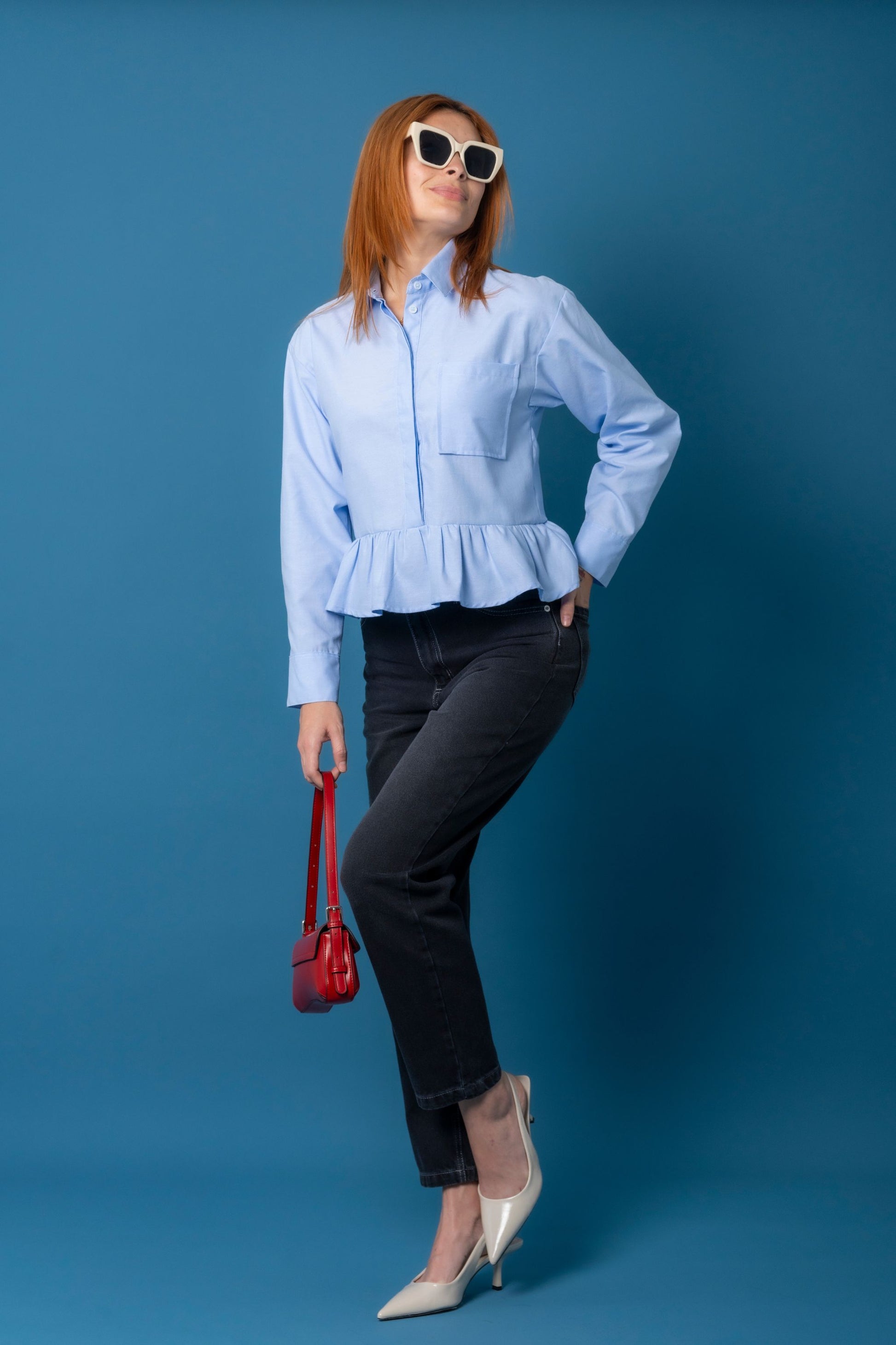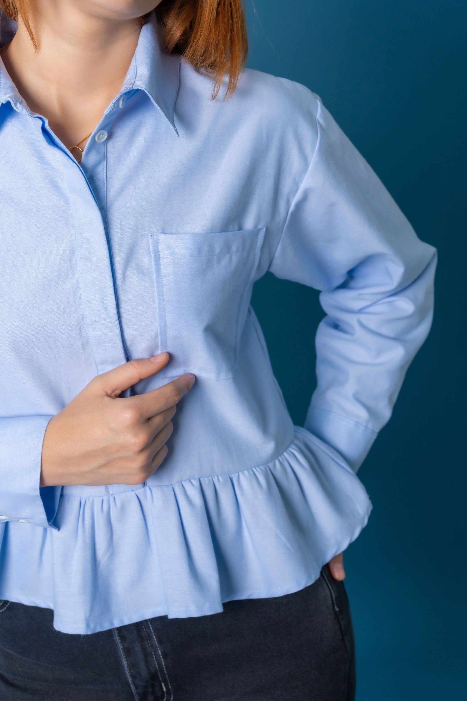 Camisa peplum manga larga , sistema de cierre frontal de abotonadura , bolsillo funcional.