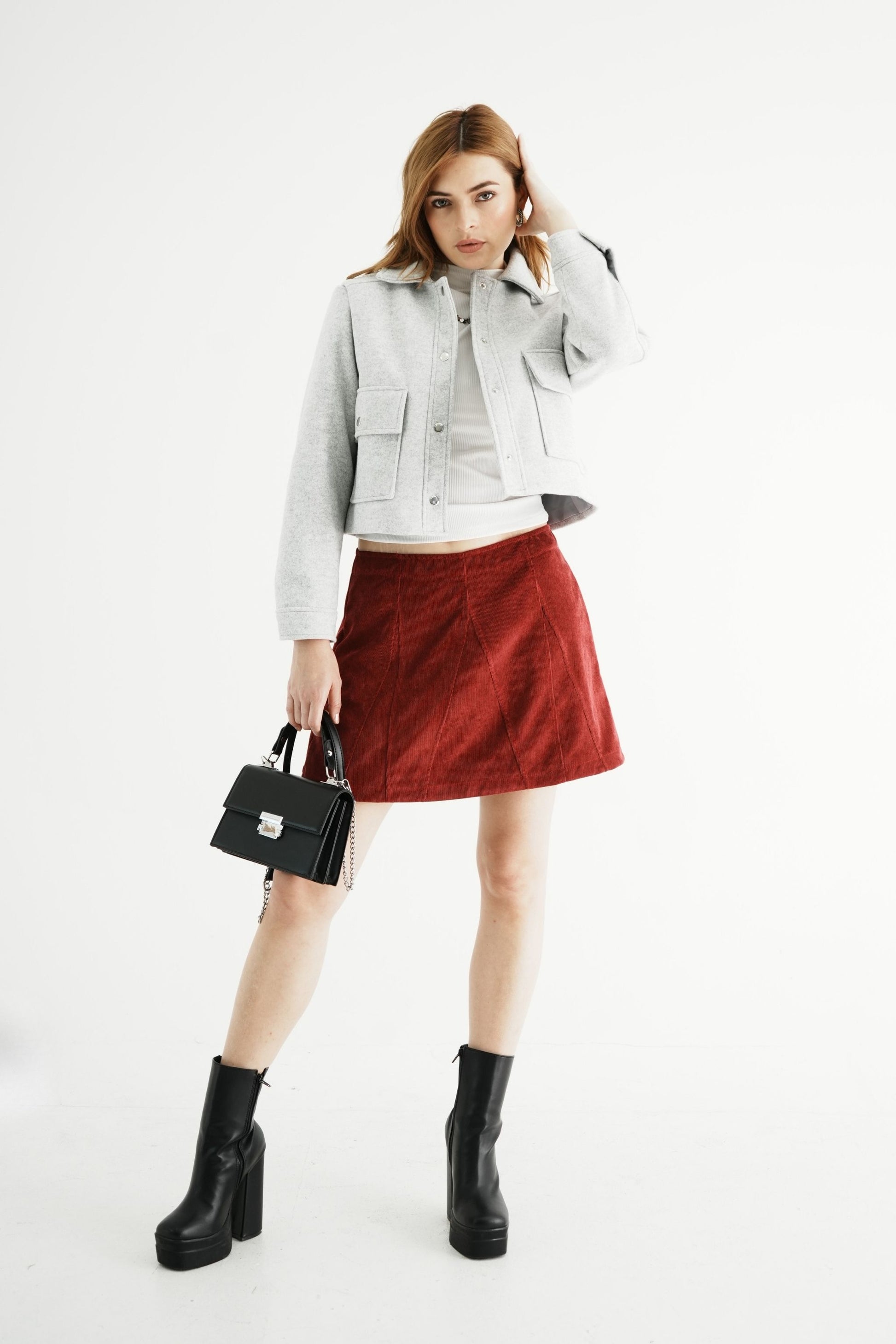 Confeccionada en tejido suave de apariencia texturizada, ofrece una sensación cómoda y ligera ideal para climas frescos. Su corte corto realza la cintura y equilibra la silueta, permitiendo combinarla fácilmente con jeans, pantalones de tiro alto o faldas.