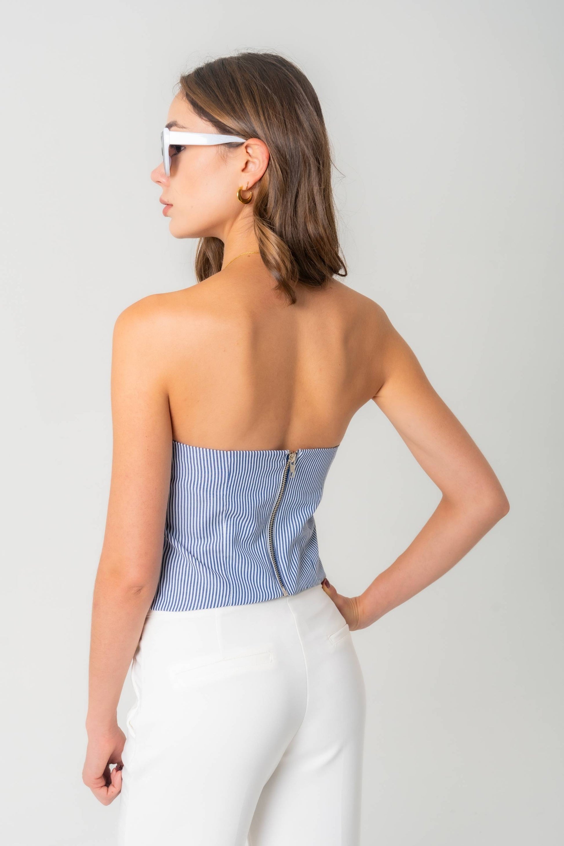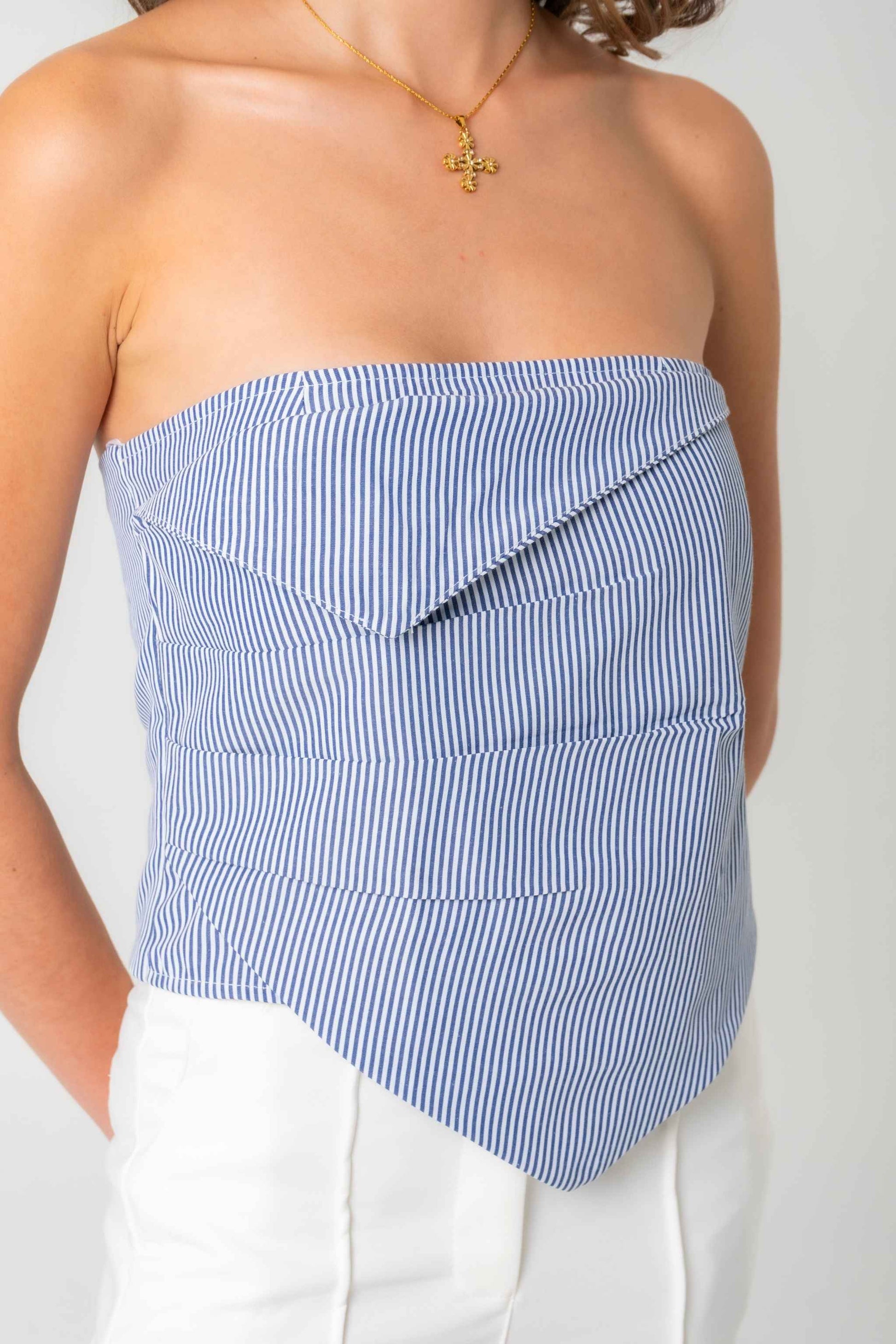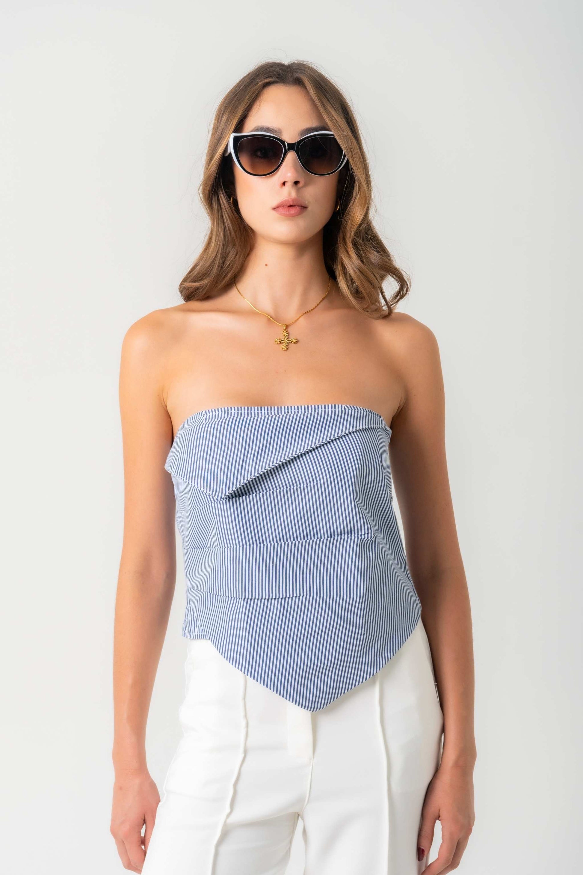 Top corse , con sobrepuesto drapeado, asimétrico en escote y ruedo,