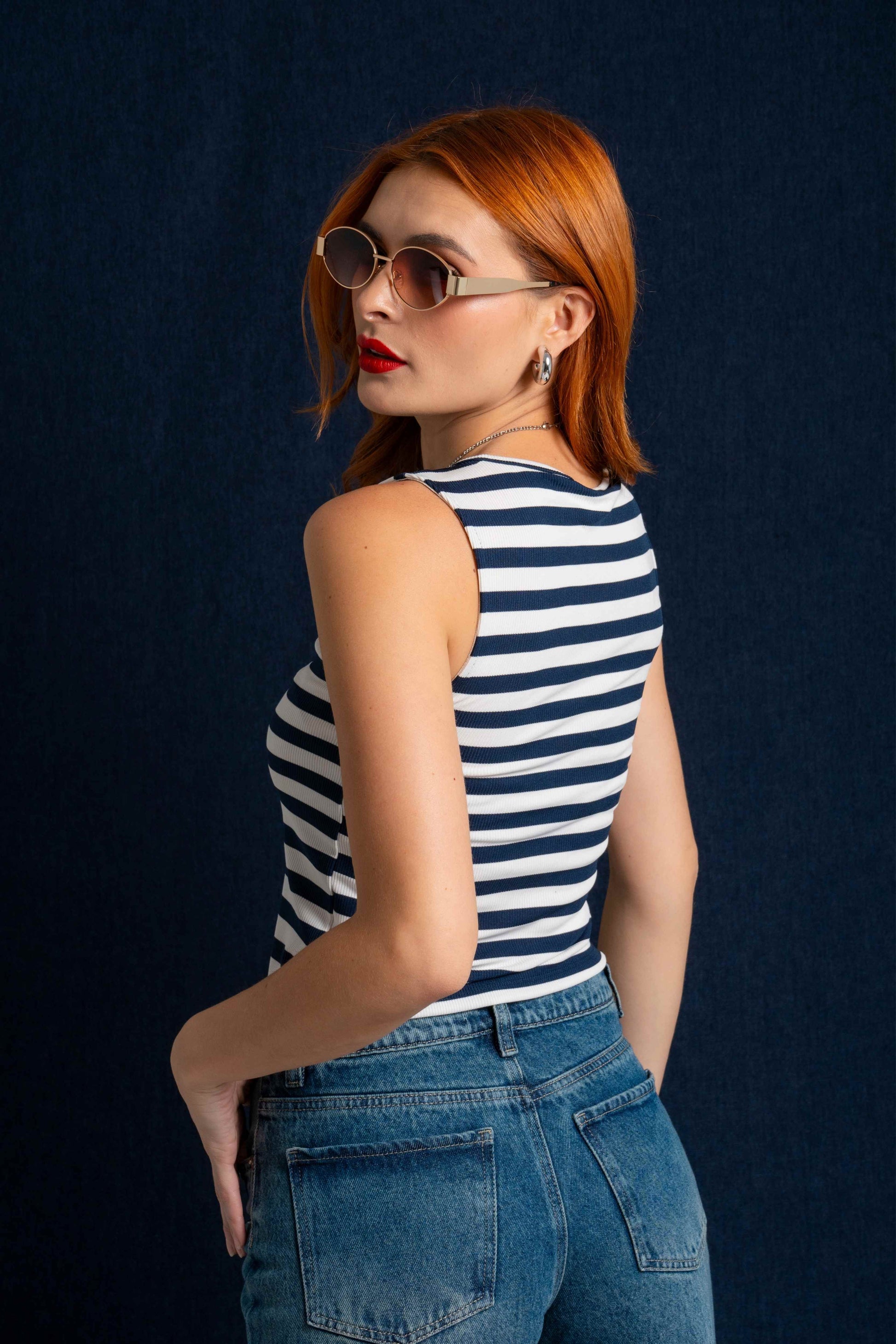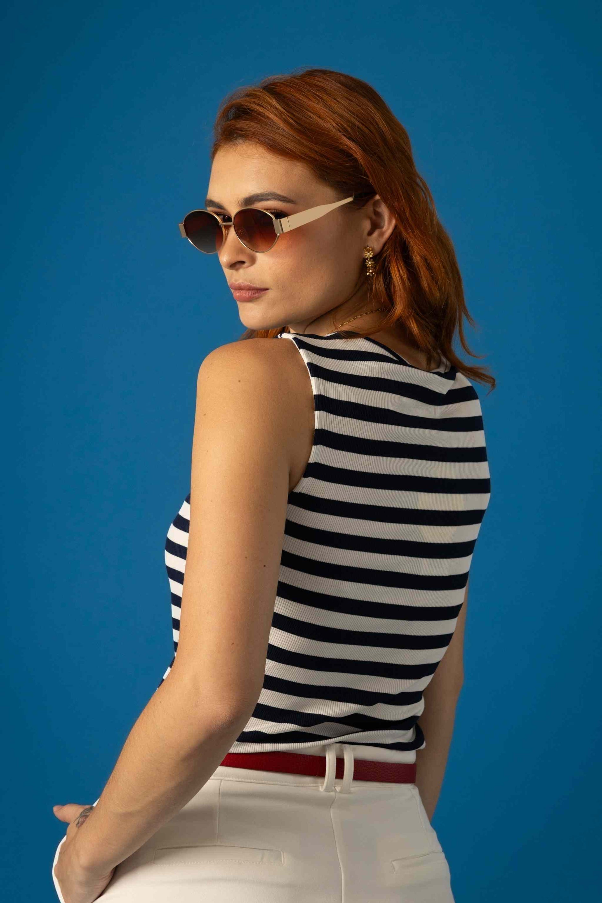Top manga sisa, escote redondo, confeccionado en tejido acanalado suave.