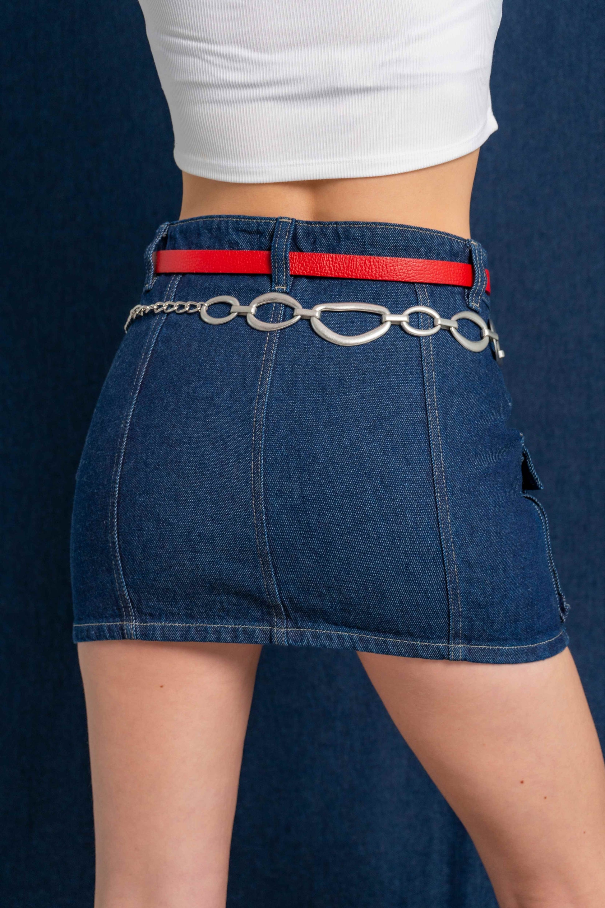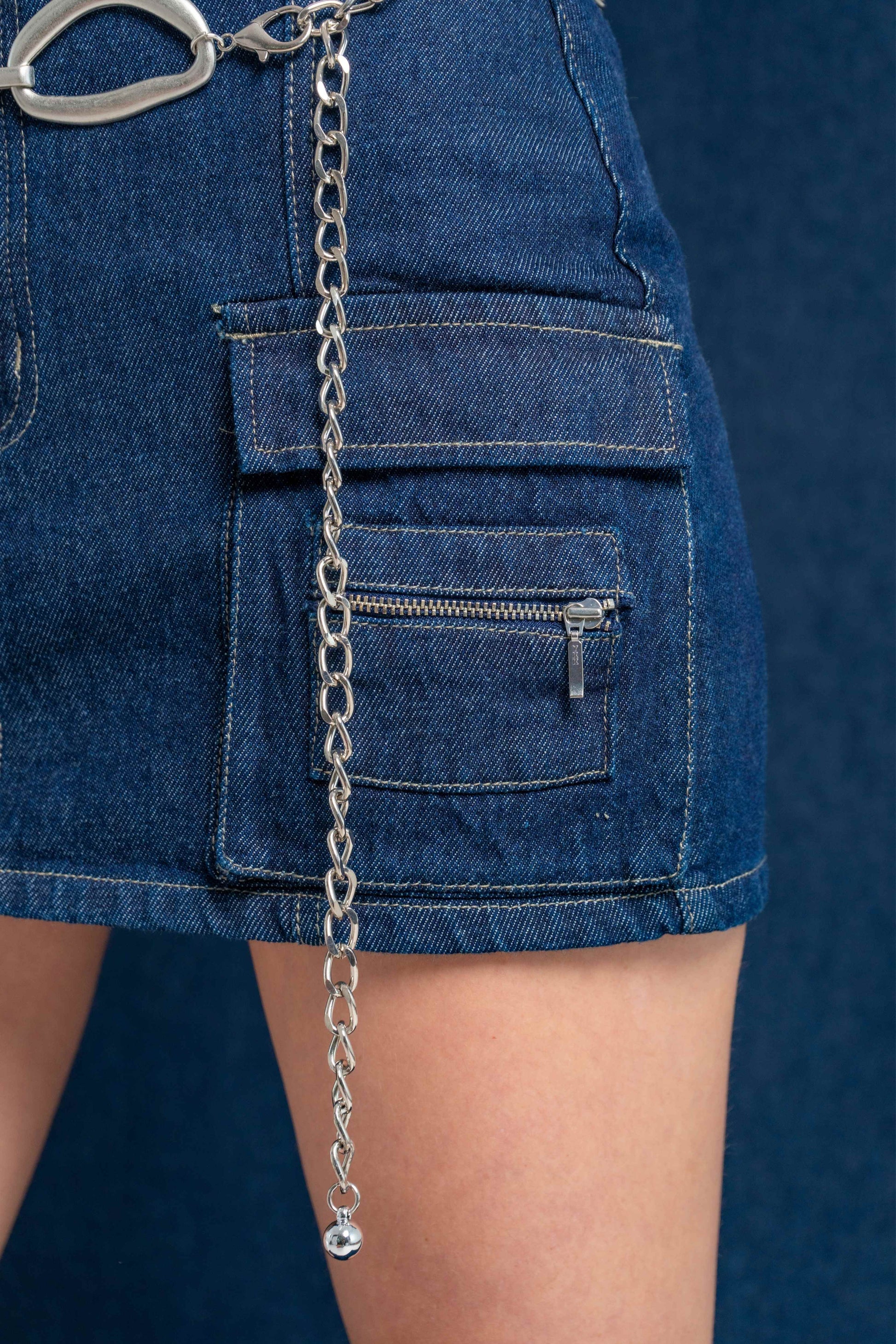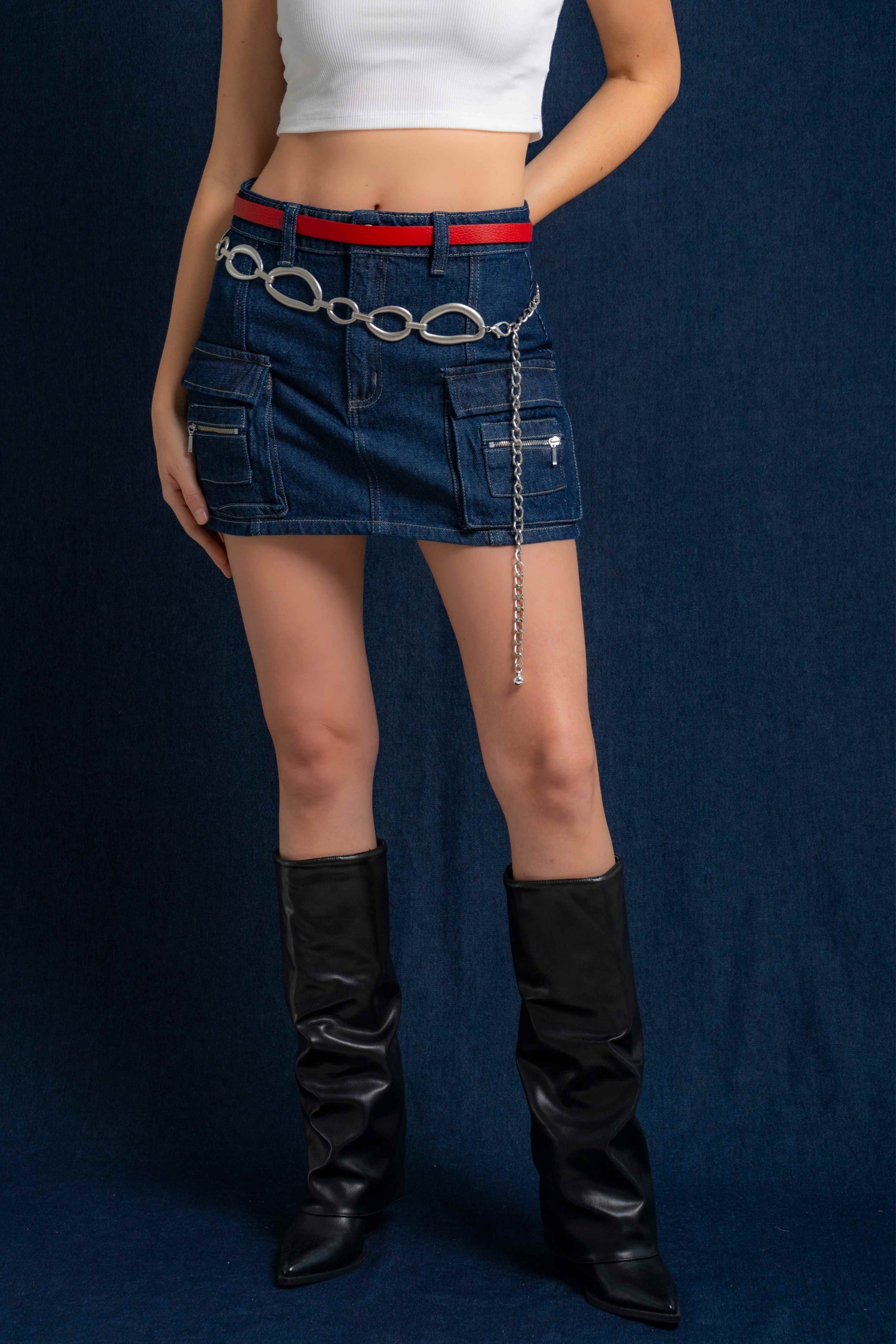 Falda corta cargo, con bolsillos cargo funcionales, pasadores para cinturón.