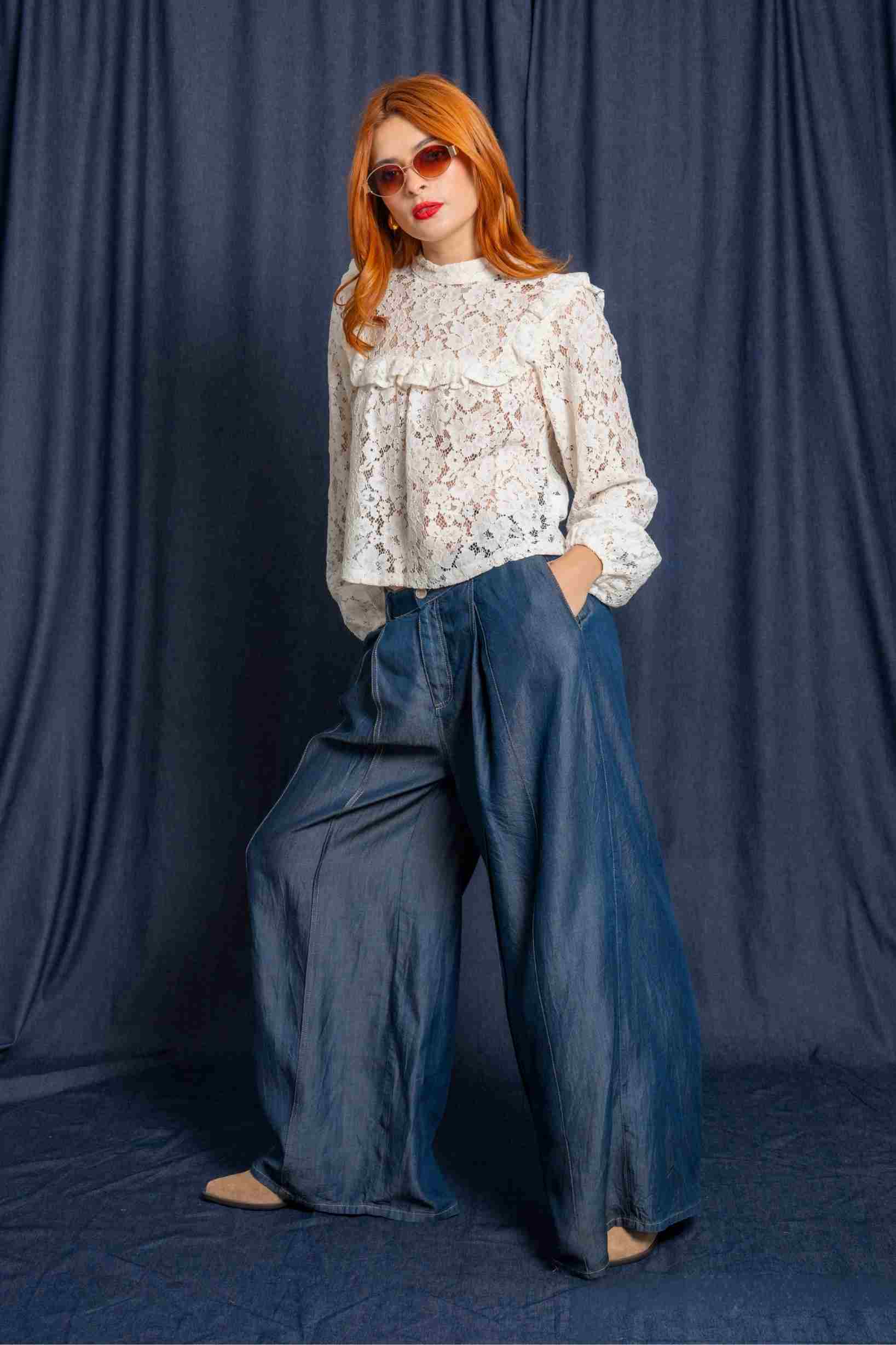 Combínala con jeans de tiro alto para un contraste moderno entre lo romántico y lo urbano, o con pantalón sastre para un look elegante perfecto para eventos, cenas o reuniones especiales.