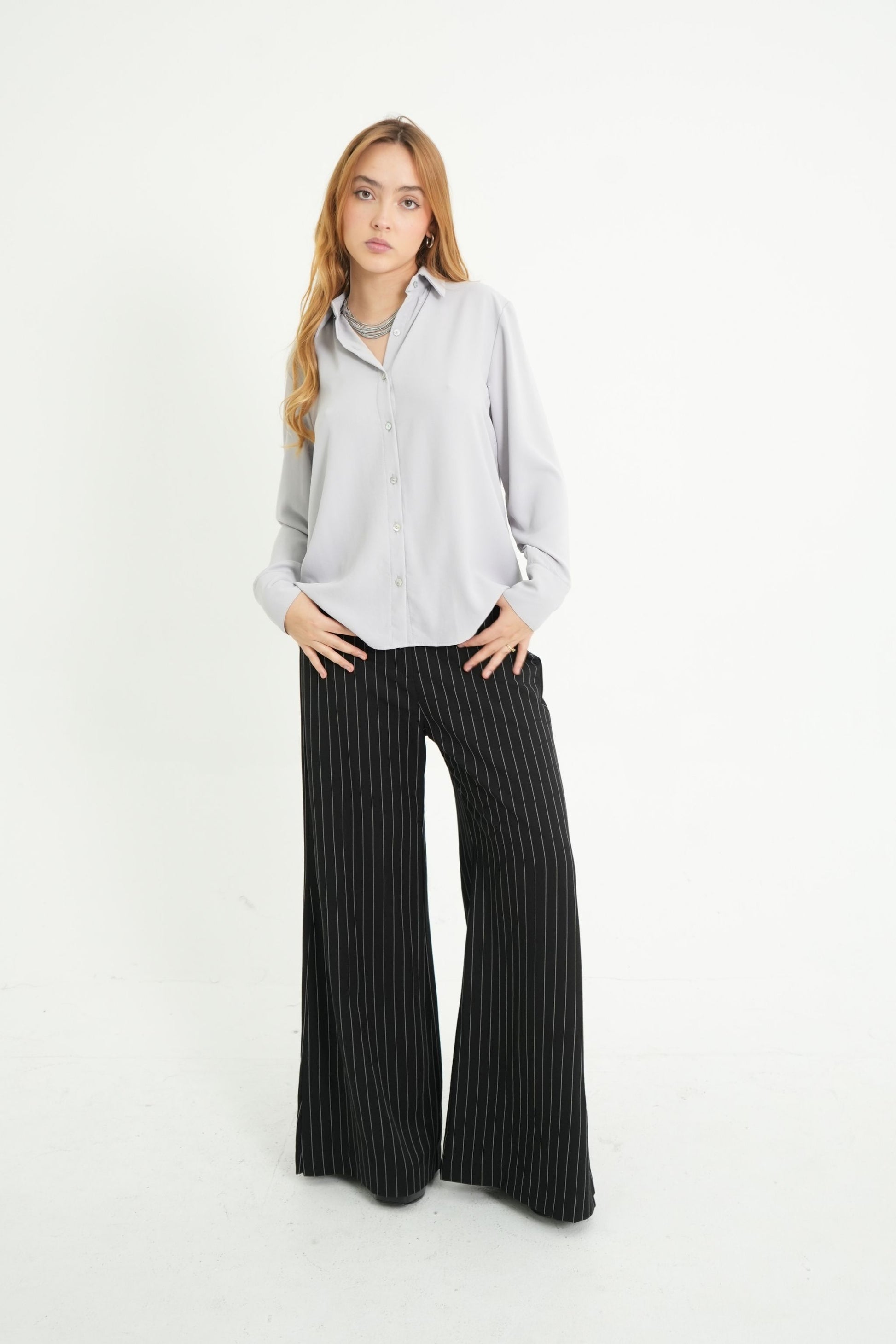 Camisa fluida femenina disponible en una amplia gama de tonos . Confeccionada en tejido Cuprotouch 100% poliéster, reconocido por su caída ligera, suavidad al tacto y acabado elegante. Incluye entretela interna (100% poliéster) que aporta mayor estructura en áreas específicas. Los botones forrados al tono de la tela refuerzan su estética sofisticada y uniforme.