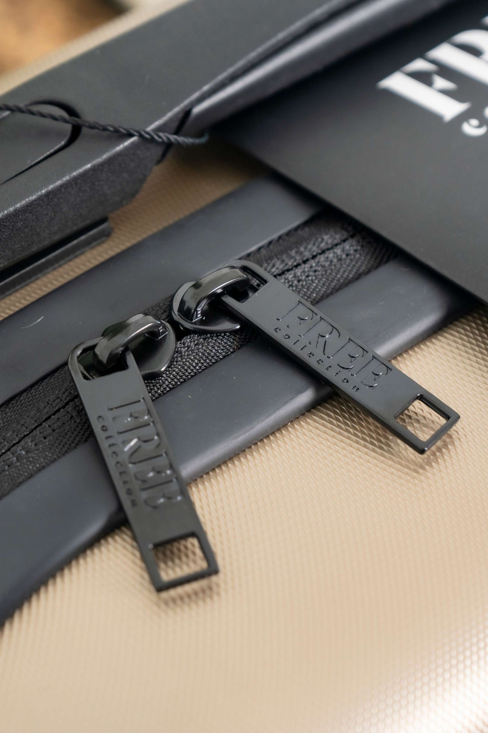 Maleta rígida en ABS de alta resistencia, con diseño minimalista en tono BRONZE y relieves horizontales. Cuenta con ruedas dobles 360°, cierre seguro y estructura ligera. Ideal para viajes de mediana duración con estilo y funcionalidad.capacidada de 18-20 kilos