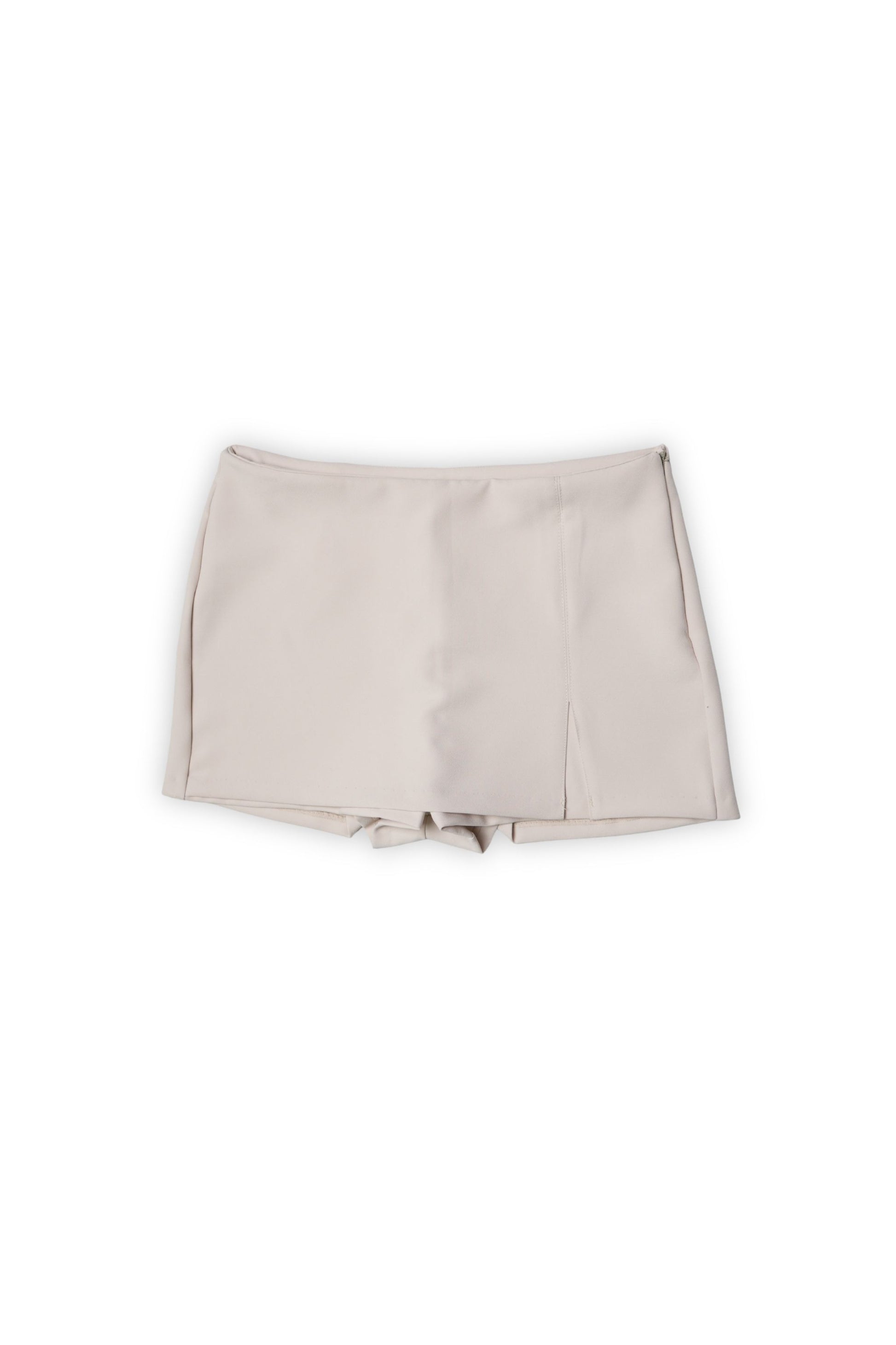 Mini falda short femenina en tono beige, ideal para un look fresco, cómodo y con estilo. Confeccionada en tela Alamar (95% poliéster, 5% spandex), suave al tacto, con caída ligera y buena elasticidad. Incluye refuerzo interior con entretela Inalsi Reflex para mayor estructura y durabilidad.