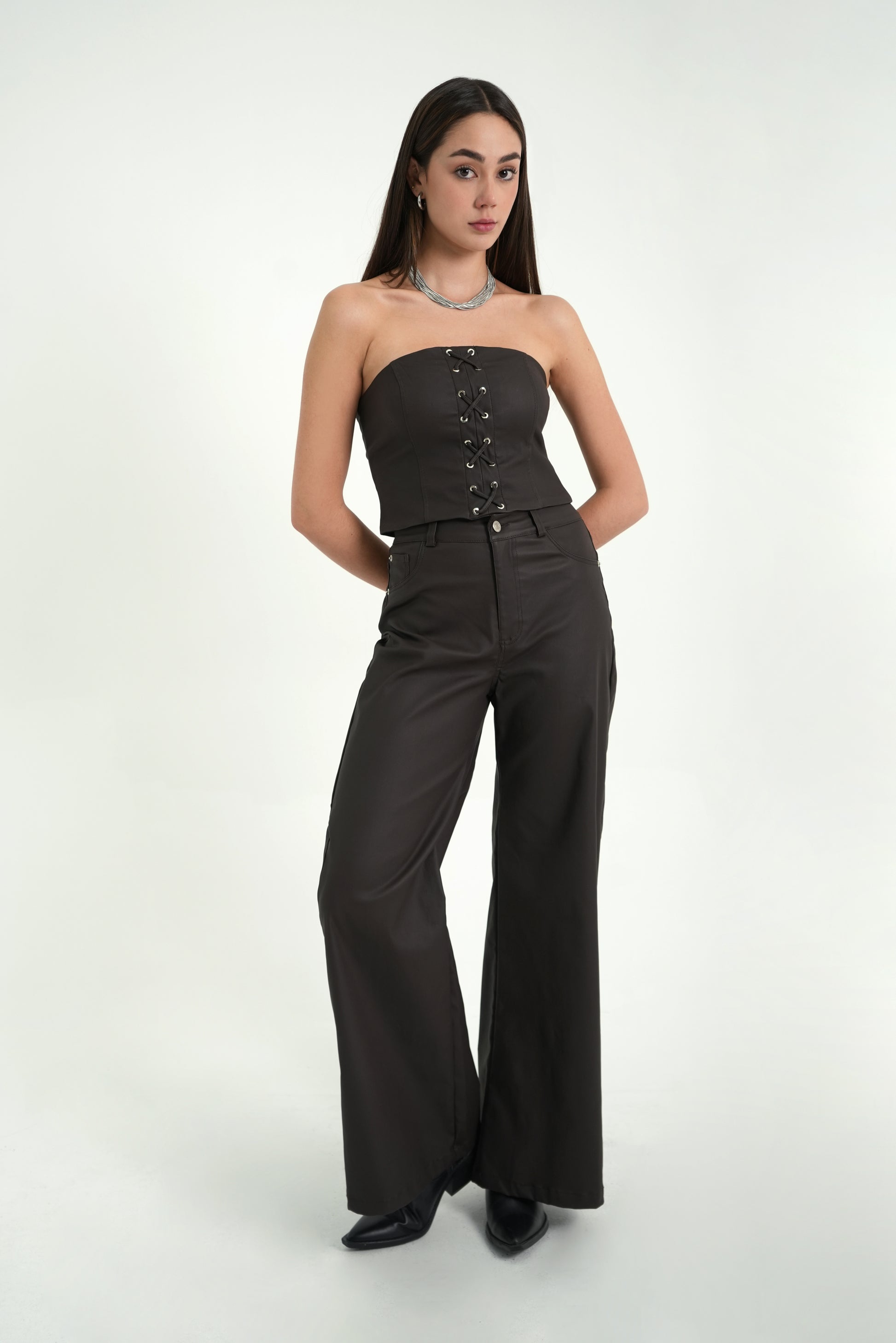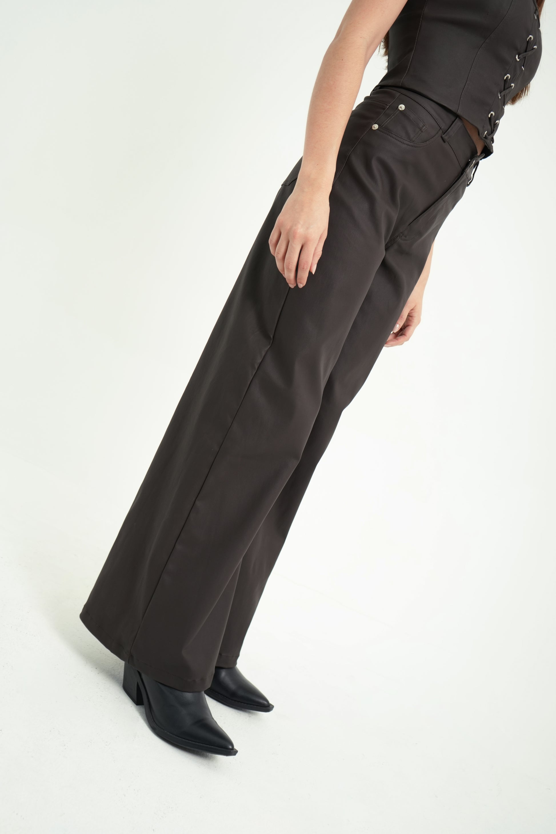 PANTALON WIDE LEG EFECTO PIEL 7302