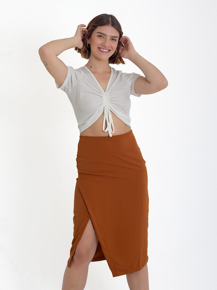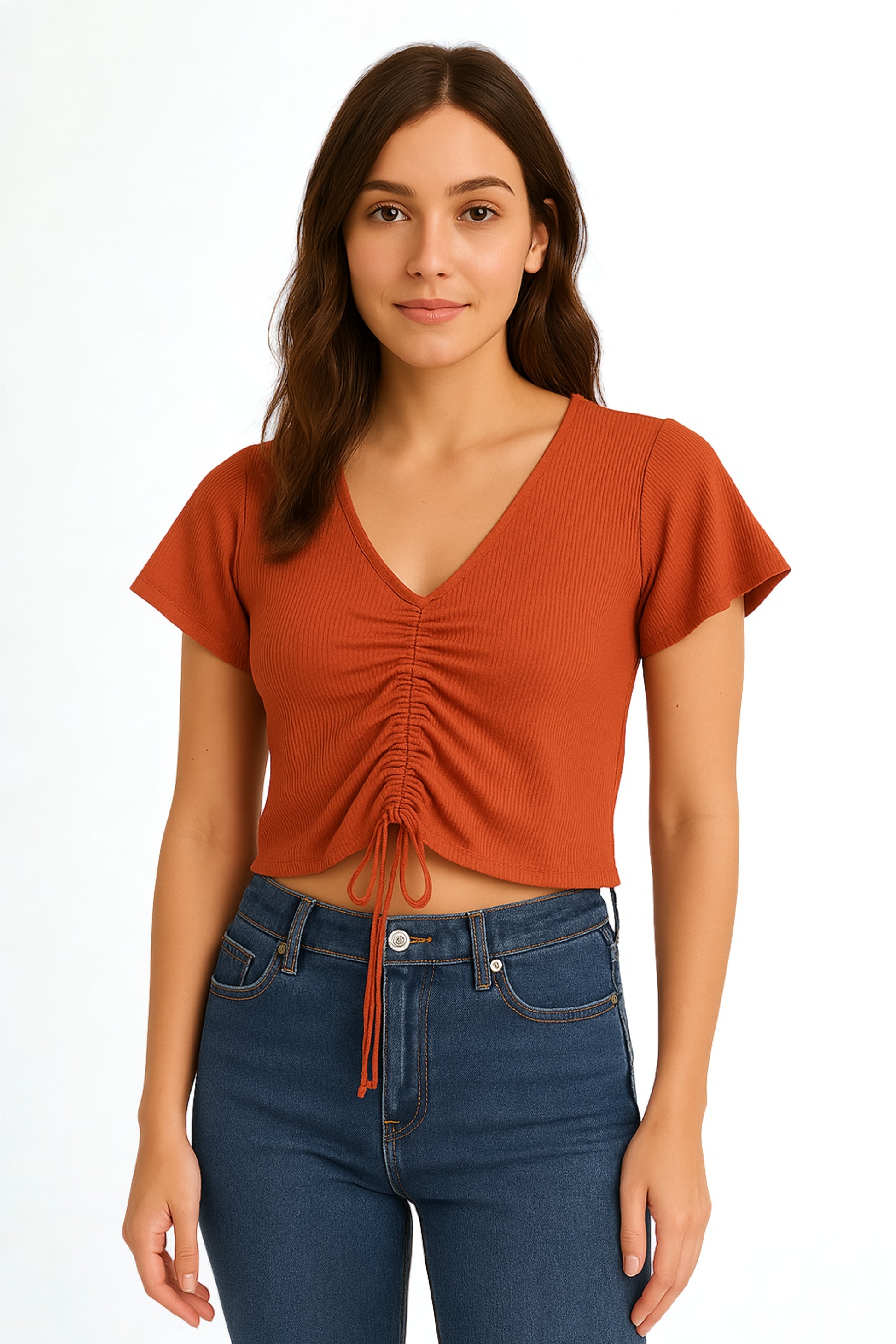 Top Rib de canalé en tonos terracota e ivory, perfecto para un look femenino y versátil.